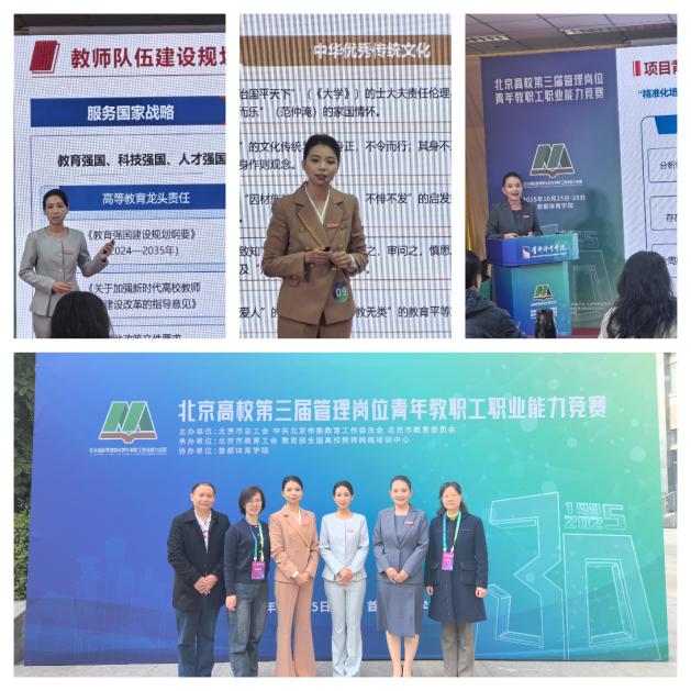 本次竞赛以 “强化管理岗位基本功训练、激发青年教职工职业活力” 为核心,通过广泛动员青年教职工参与职业能力比拼,旨在培育爱岗敬业、团结协作的职业精神,推动管理理念更新与现代管理技术应用,着力打造信念坚定、为民服务、勤政务实、敢于担当、清正廉洁的高素质管理队伍,为首都高等教育事业高质量发展注入动力。为保障参赛成效,赛前,我校教师发展中心与校工会精心筹备,特邀兄弟院校优秀指导老师、学校相关职能部门领导及往届获奖选手,为参赛团队开展四轮专项专家辅导,从方案优化、展示技巧到临场应变等多维度精准赋能,为选手备赛筑牢坚实基础。